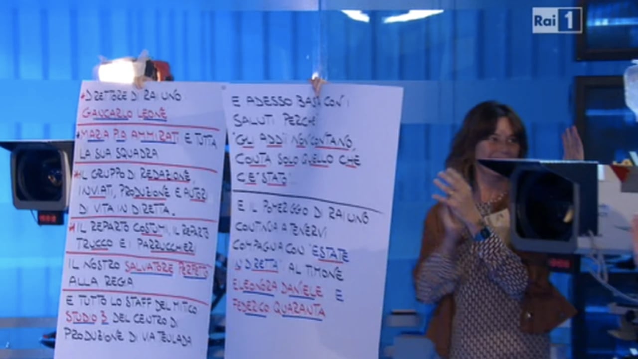 Ciò che ha fatto sorridere è stato come il gobbo (in questo caso quello classico, composto da fogli di carta scritti a mano e tenuti da una persona dietro le quinte) sia poi entrato nell’inquadratura, rendendo Latella non più l’unica ad essere ripresa in diretta. La regia ha cercato di rimediare staccando sullo studio, ma anche in quel caso il gobbo era visibile dal maxischermo. Ma è così importante il gobbo?