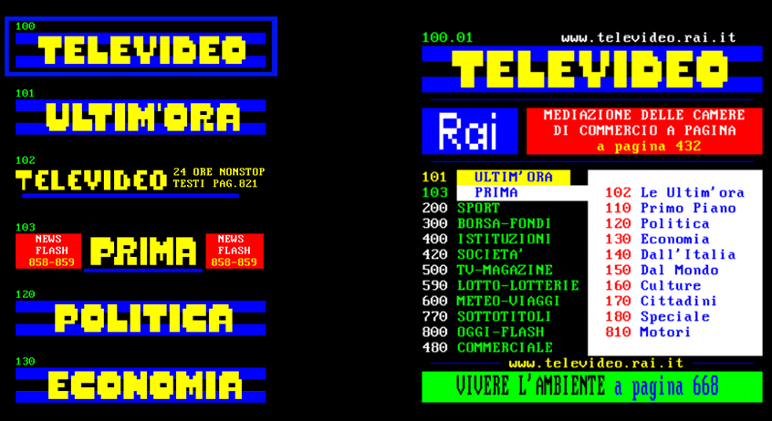 Nel giro di pochi mesi la struttura si stabilizza e prende forma quella che diventerà l’organizzazione classica del servizio, basata sui tasti colorati del telecomando (Fastext), destinati a diventare uno standard internazionale: